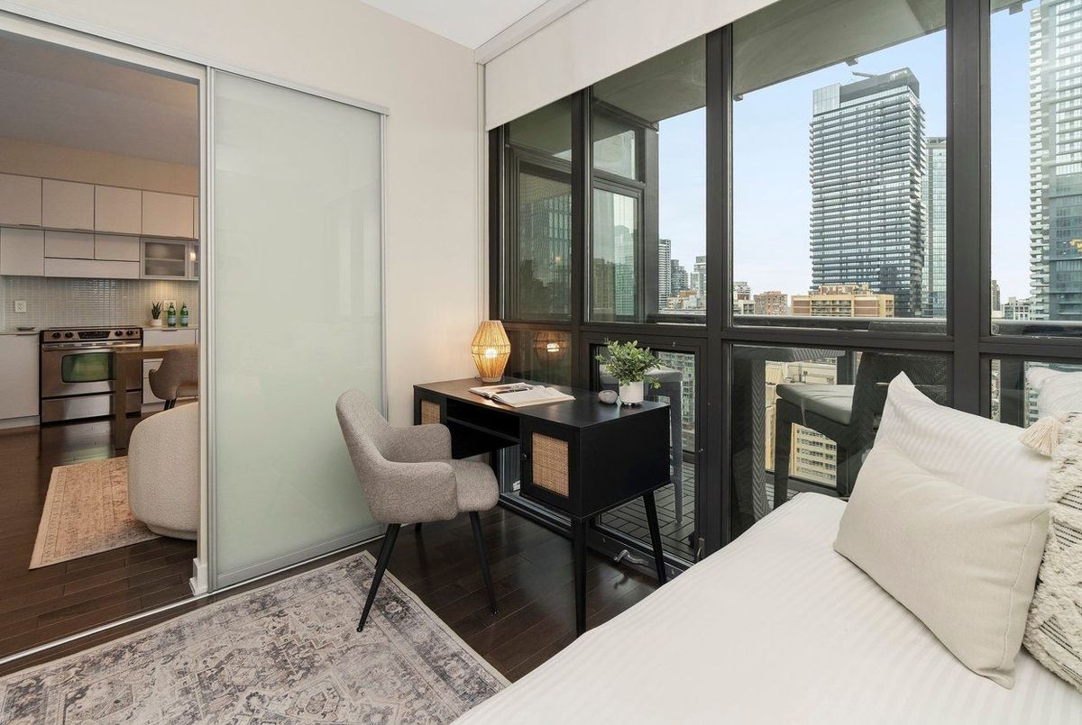 Welcome to luxury living at **X Condos** in the heart of Toronto's vibrant Church-Yonge Corridor. Perfectly positioned just steps to **Yorkville**, the **Shops on Bloor**, the **University of Toronto**, the **Royal Ontario Museum**, UHN hospitals, Rosedale Valley trails and with effortless access to the DVP, this is true downtown convenience. Surrounded by professionals, medical specialists, academics and urban executives, the building attracts a sophisticated demographic who value walkability, transit access and lifestyle. Residents enjoy full amenities including 24-hour concierge, indoor pool, hot tub, steam room, gym/yoga studio, rooftop terrace with BBQs, guest suites and visitor parking . Perched on the 24th floor, this stunning west-facing 1+Den suite offers over 700 sq ft of beautifully designed open-concept living . Floor-to-ceiling windows flood the space with natural light and showcase breathtaking city views and unforgettable sunsets . Hardwood flooring flows throughout, complementing the spacious living and dining area anchored by a large centre island - perfect for entertaining. The kitchen seamlessly connects to the main living space, enhancing the airy, modern feel. The generous primary bedroom features built-in closet space, while the large enclosed den (currently used as a second bedroom) offers exceptional flexibility for guests, a home office or growing family needs . Step out onto your oversized private balcony and take in the unobstructed west exposure . Additional highlights include one owned underground parking space and an owned locker , ensuite laundry, and a wall of storage rarely found in condo living. Move-in ready and impeccably maintained, this is elevated urban living in one of Toronto's most connected and desirable neighbourhoods.