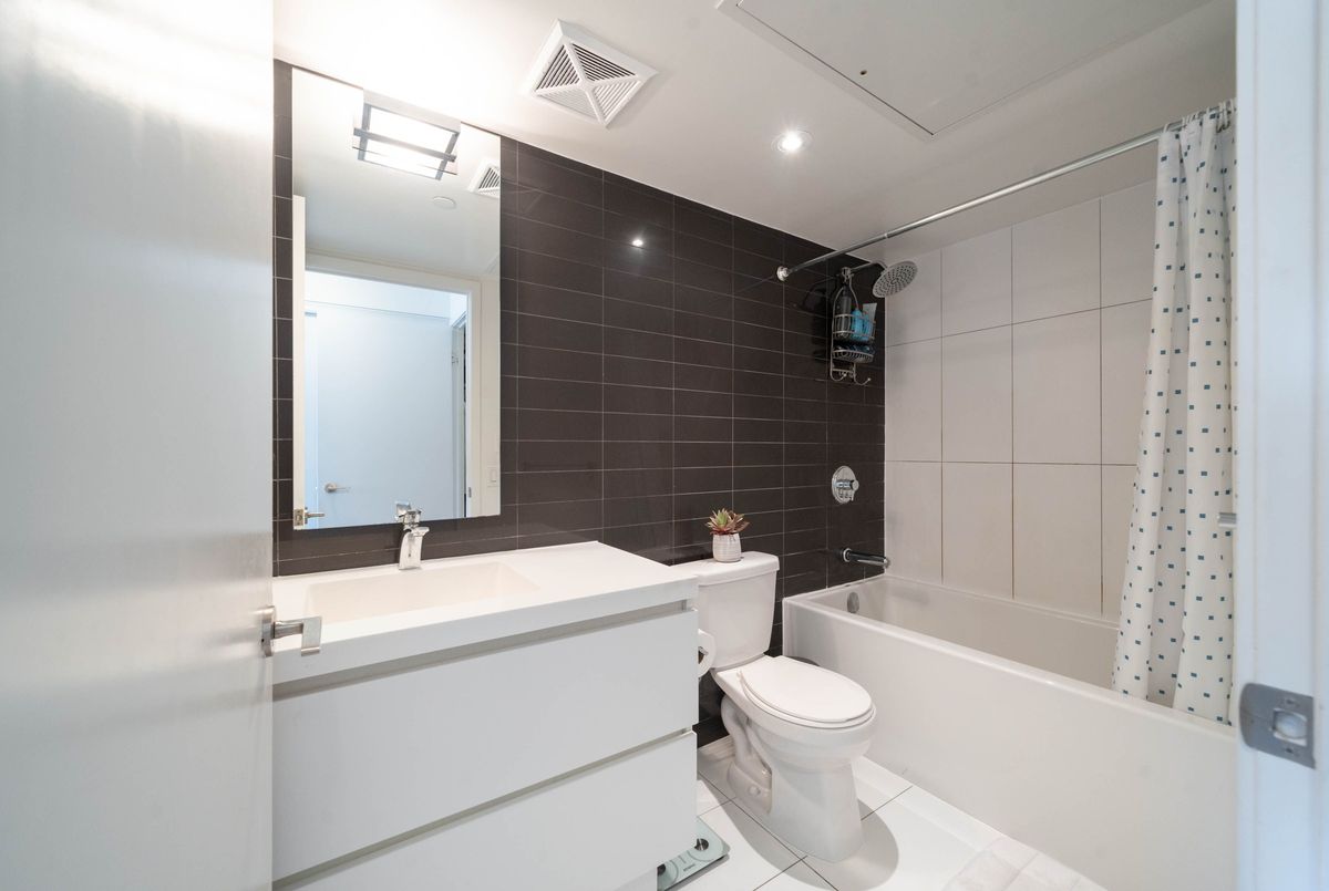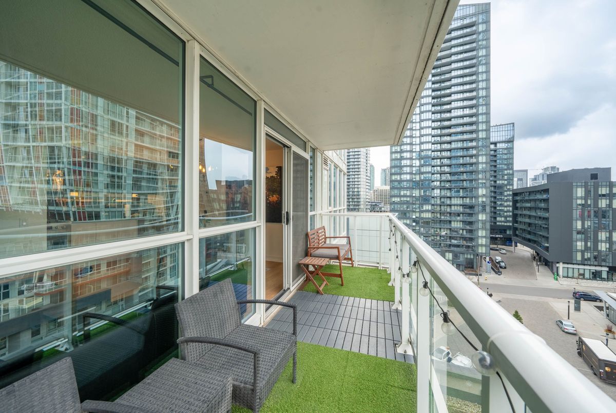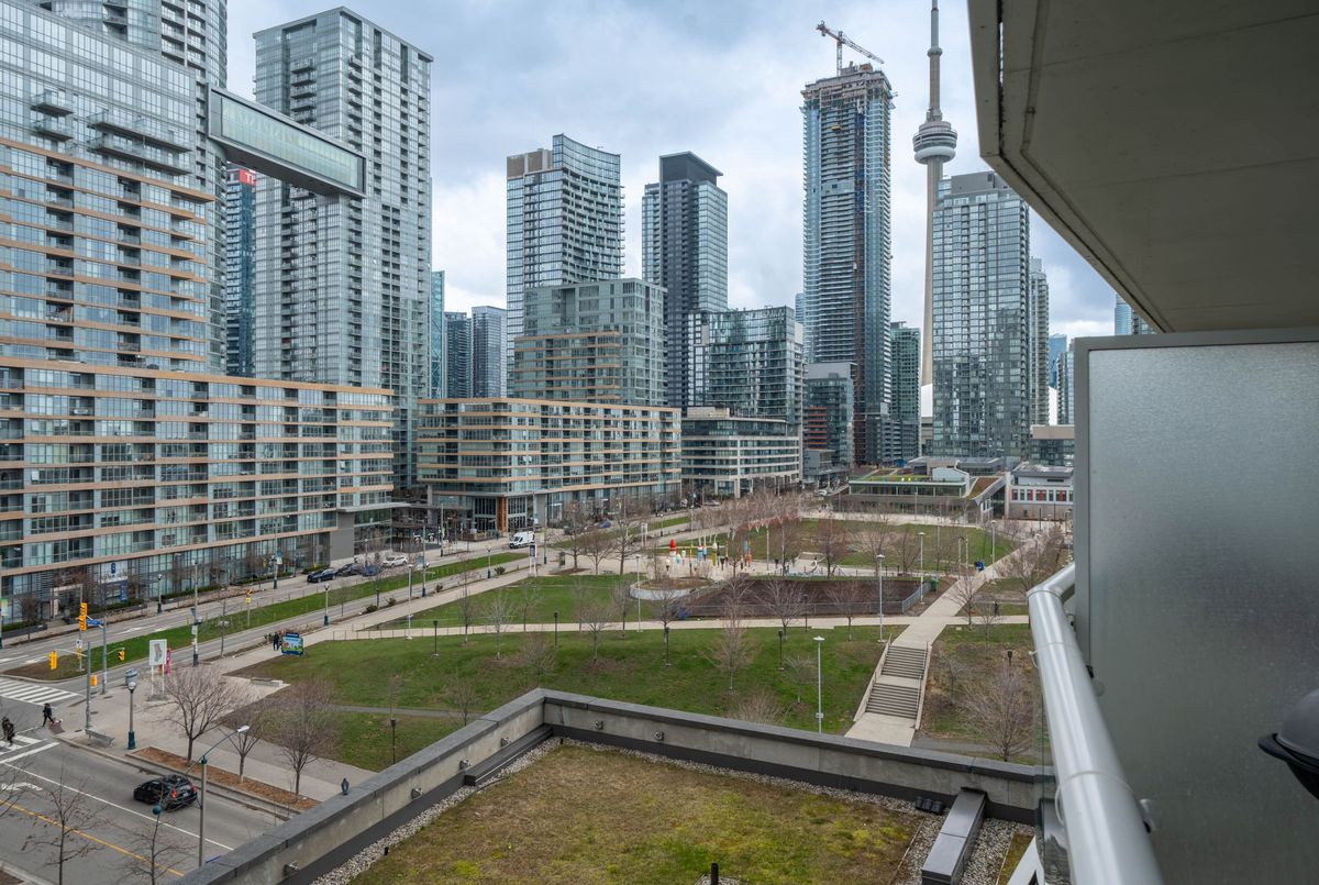Welcome to Toronto's vibrant Waterfront community. This bright corner suite offers an exceptional layout with two large bedrooms, two full bathrooms, and parking included. Both bedrooms are generously sized and feature floor-to-ceiling windows that fill the space with natural afternoon light, creating comfortable and functional retreats.The oversized open-concept living and dining area provides plenty of room to relax or entertain, complemented by a modern kitchen with quartz countertops and stainless steel appliances. The primary bedroom features a private 4-piece ensuite and a spacious walk-in closet, offering both comfort and convenience.Step outside to your 100 sq ft balcony with sweeping 180-degree views, including the CN Tower. Recent upgrades include new vinyl flooring throughout and a new washing machine.Perfectly located across from two elementary schools and the new Loblaws, and just steps to Canoe Landing Park, restaurants, and the LCBO. Residents enjoy premium amenities including an indoor pool, sauna, hot tub, gym, basketball court, guest parking, and more.