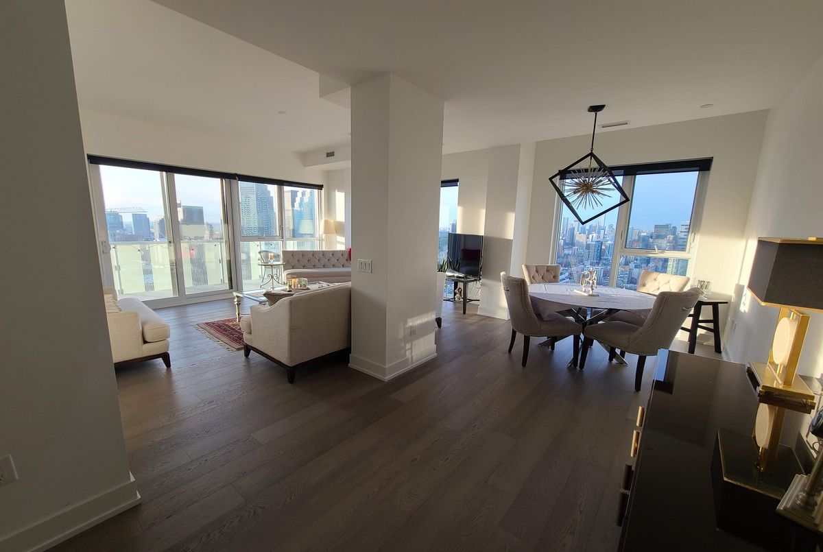 Rise to the top! Elevate your lifestyle in this unique & grand 2 bedroom + 2 washroom corner condo at Lighthouse West Tower (approx 1243 sqft+ 289 sqft balcony space). Take in the panoramic lake and city views from the expansive balcony. The Great Room -lends itself well to multi-purpose usage - whether its open concept or enclosed as a 3rd bedroom or den. Practical split bedroom plan, both bedrooms with walk-in closets & walk-out to balcony. Featuring 10' smooth ceiling, engineered wood floors, floor to ceiling windows. Chef inspired kitchen with integrated Miele appliance package (Fridge, Cooktop, B/I Oven, B/I dishwasher). Bright & spacious unit, open concept layout, great for entertaining. 3 balcony walkouts. Amazing waterfront location- steps to Loblaws, Farmboy, Shoppers Drug Mart, Restaurants, Starbucks, Cafes, Banks, George Brown College, Sugar Beach, Harbourfront, St. Lawrence market. Easy access to transit, Union Station, Gardiner, DVP, Lake Shore Blvd. *** Premium Tandem parking space. *** Owner's Furnishings can be included for a true turn key possession.