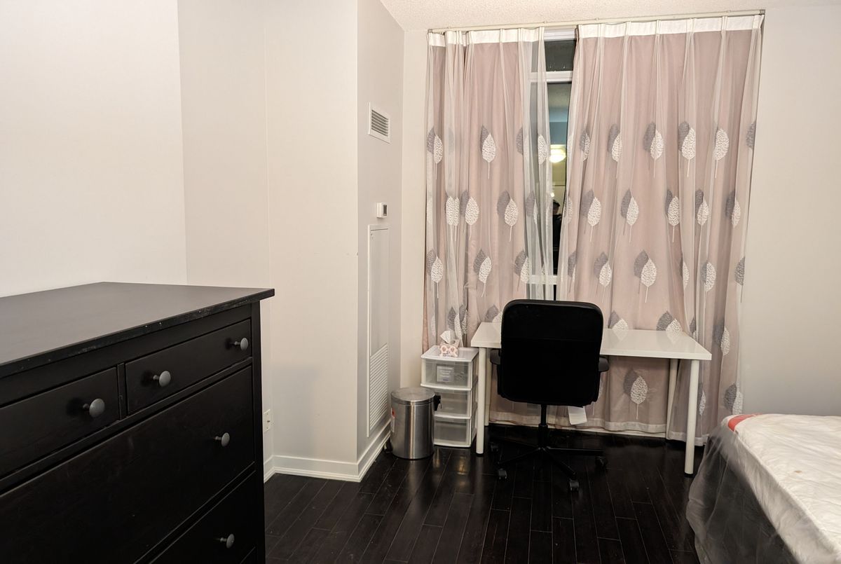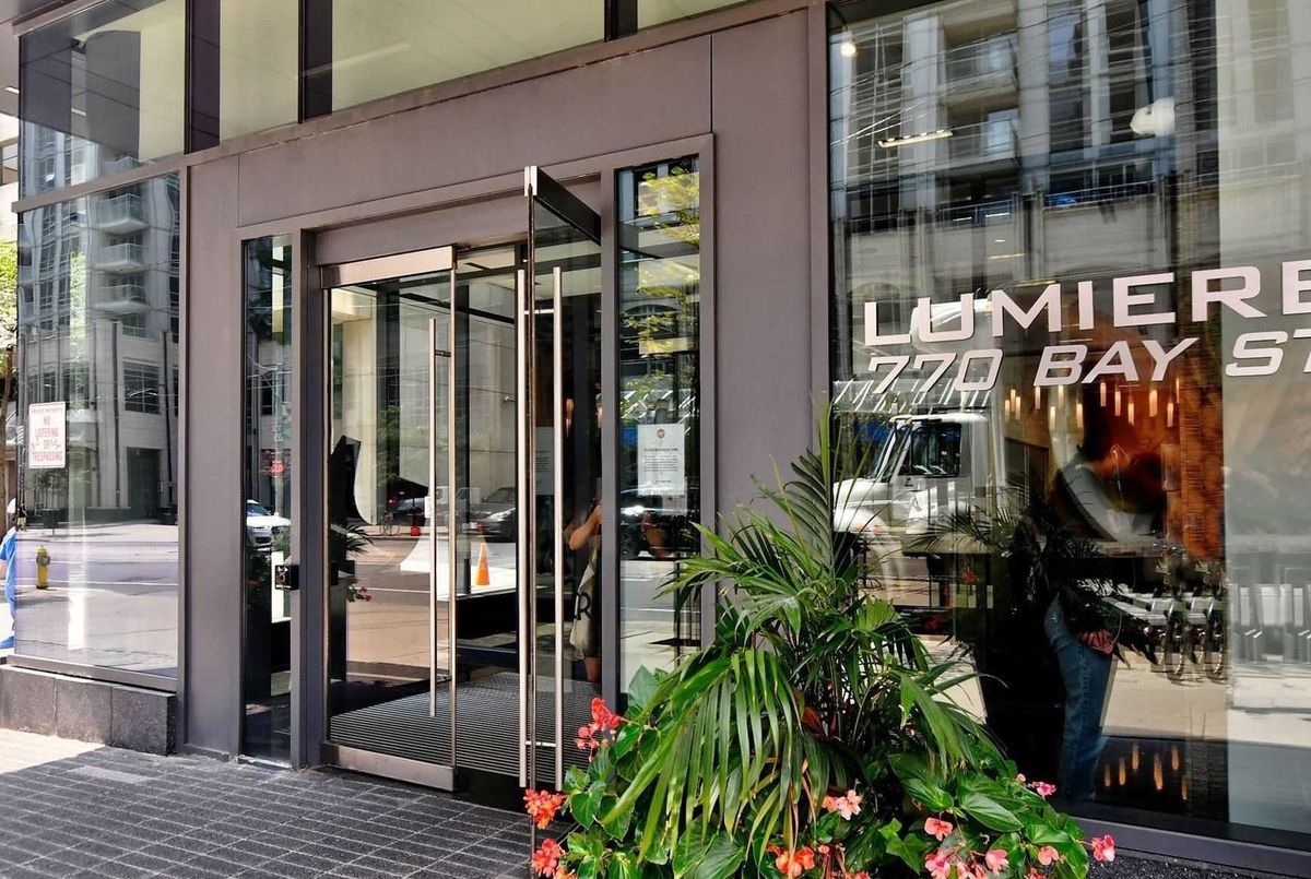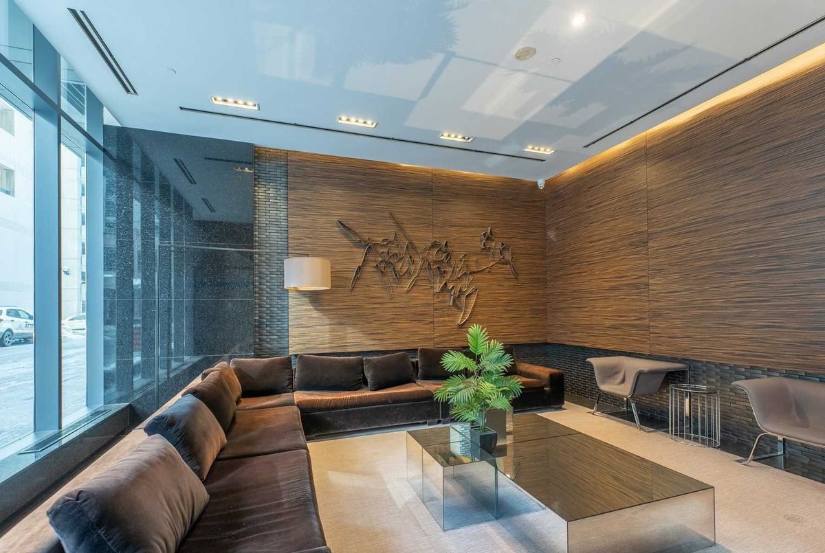 "Menkes" Luxury Condo In The Heart Of Bay & College. Corner Unit. 2 Split Bedrooms, 1 Parking And 1 Locker. 9 Ft Ceiling. Floor To Ceiling Windows. Upgraded Hardwood Floor Through Out. 24 Hr Concierge, Swimming Pool, Gym, Roof-Top Garden, Party Room And Guest Suites. Steps Away From Financial District, U Of T, Shops, Restaurants And Subway.